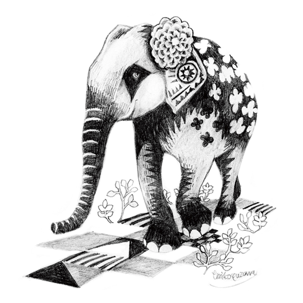 モデルは井の頭自然文化園のはな子で、タイの花模様をイメージしました。