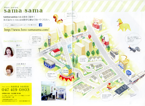 千葉県前原にあるオシャレな美容室「samasama」 イラストマップを描かせて頂きました。 美容室「samasama」 http://www.hms-samasama.com/ 2014.6